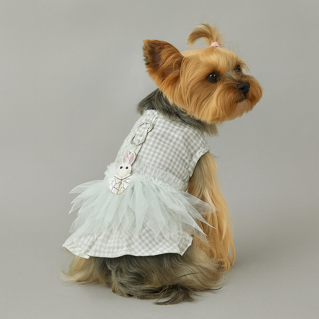Dog Dress Cute Cartoon Print Plaid Top